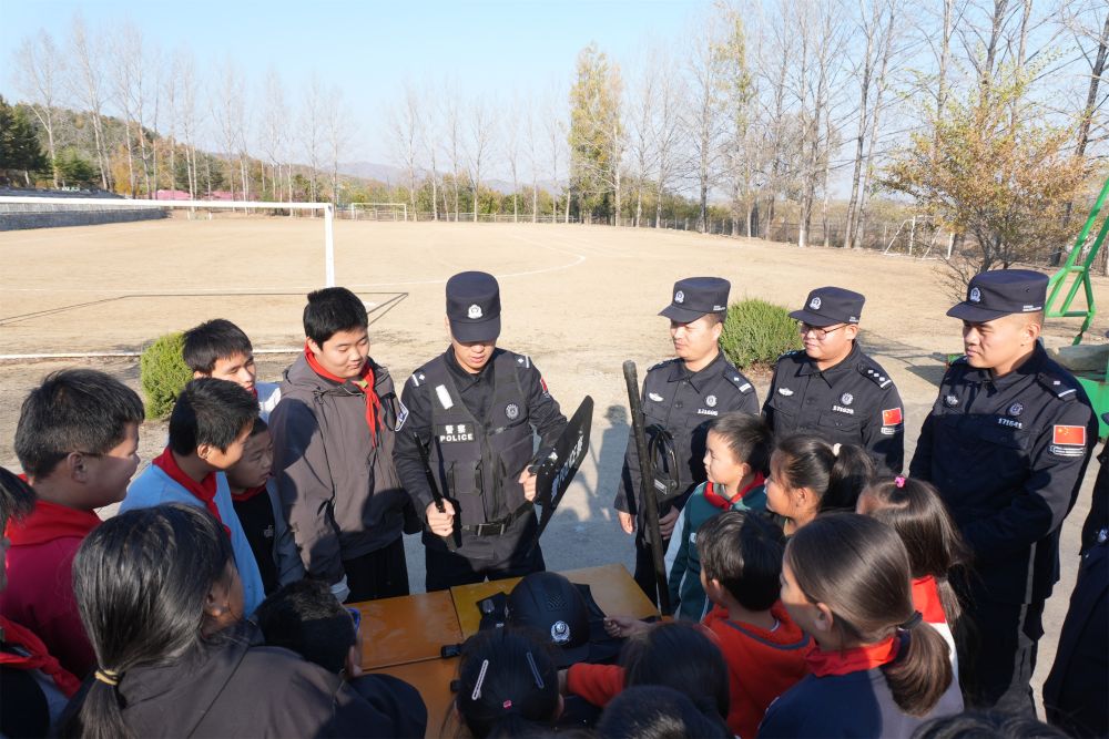 新华网长春10月29日电(记者邵美琦)“叔叔,这个盾牌好美丽啊,有啥效果呀?”“这个盾牌能够遣散坏人、抵御突击、维护我们的安全……”28日上午,在吉林省珲春市敬信镇校园的操场上,吉林圈河出入境边防检查站的民警们为孩子们带来了一堂独具匠心的“警用配备体会课”。